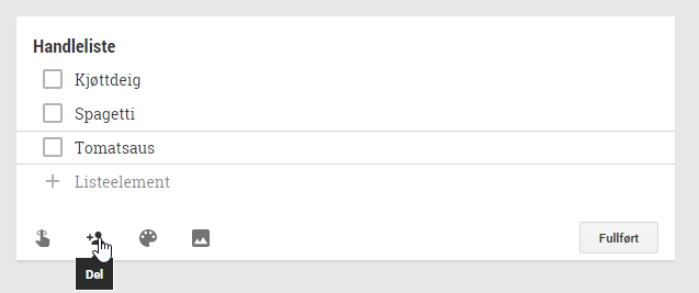 Den viktigste, og kanskje mest etterlengtede funksjonen, som nå er lagt til Google Keep, er muligheten til å dele notater med andre brukere. Dette betyr at man kan dele f eks handleliste, bilder, linker og annet med andre brukere.