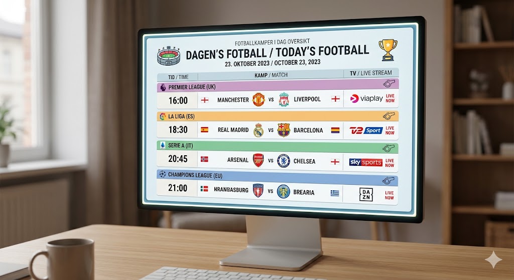 For å navigere i jungelen av fotballkamper i dag trenger du et system som sorterer kamper etter liga, tidspunkt og tilgjengelighet på TV. De fleste norske fotballfans starter dagen med å sjekke en digital terminliste som viser alt fra tidligkamper i asiatiske ligaer til de store kveldsoppgjørene i Sør-Amerika. Det handler ikke bare om å vite hvem som spiller, men også hvor kampen sendes, da rettighetslandskapet i Norge er i stadig endring. Ved å bruke spesialiserte søkeverktøy kan du enkelt finne ut om en spesifikk fotballkamper i dag krever et eget abonnement eller om den sendes på åpne kanaler.