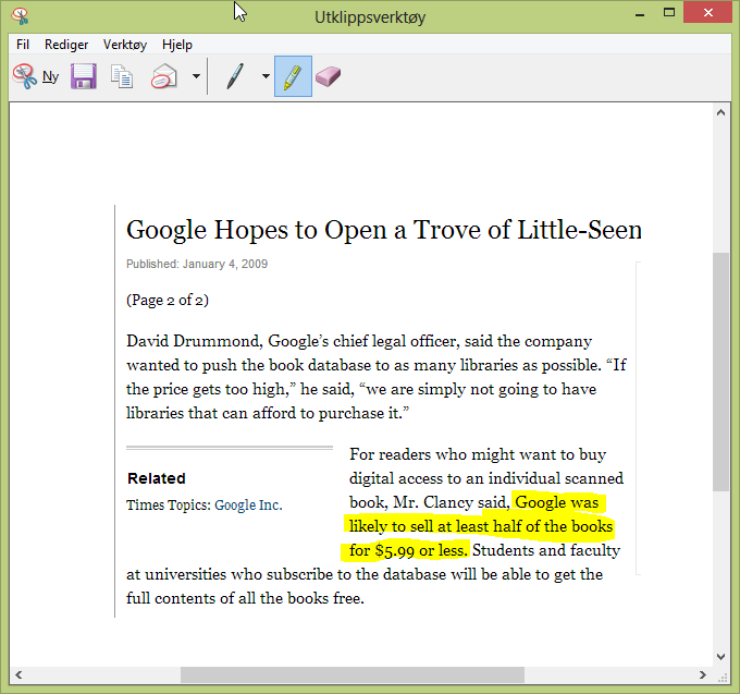 Har du OneNote installert, kan du trykke Windowstast + S for å lagre utklipp til OneNote, hvor det kan redigeres videre. Dette gir også mange gode redigeringsmuligheter.
